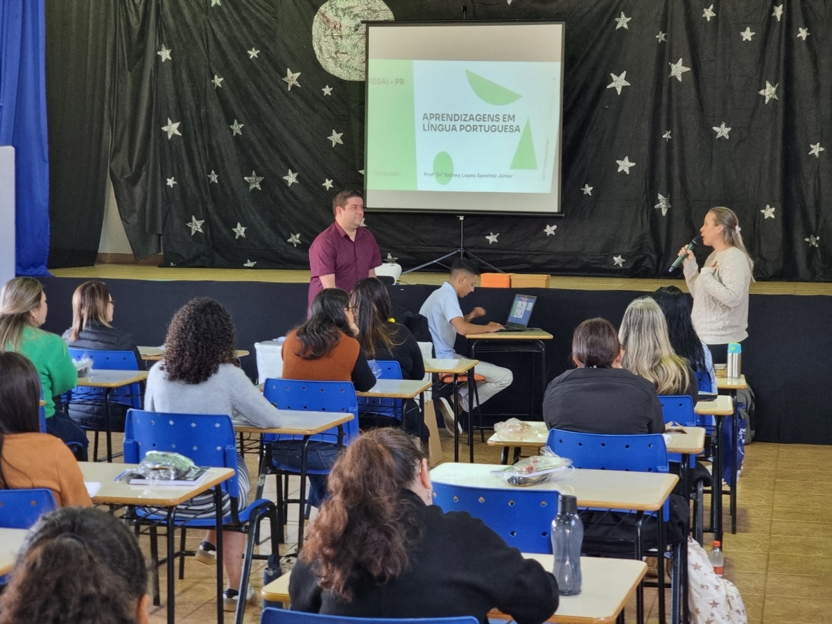 No último sábado (16), os professores do 2º, 5º e classe especial iniciaram a jornada de conhecimento que terá duração de 3 meses. Neste primeiro módulo, os educadores recebem orientações sobre monitoramento e acompanhamento das aprendizagens em Língua Portuguesa e Matemática, com o Professor Doutor Sidney Lopes Sanchez Junior.