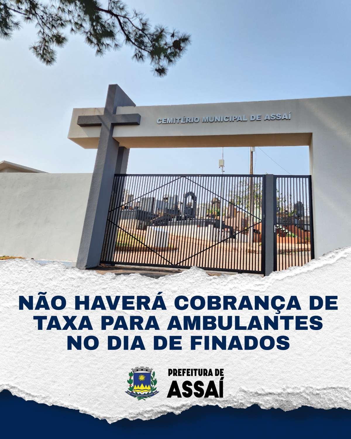 A Prefeitura de Assaí comunica que não haverá cobrança de taxa para os vendedores ambulantes que desejarem comercializar flores, velas e outros produtos durante o final de semana do Dia de Finados (01 e 02 de novembro).