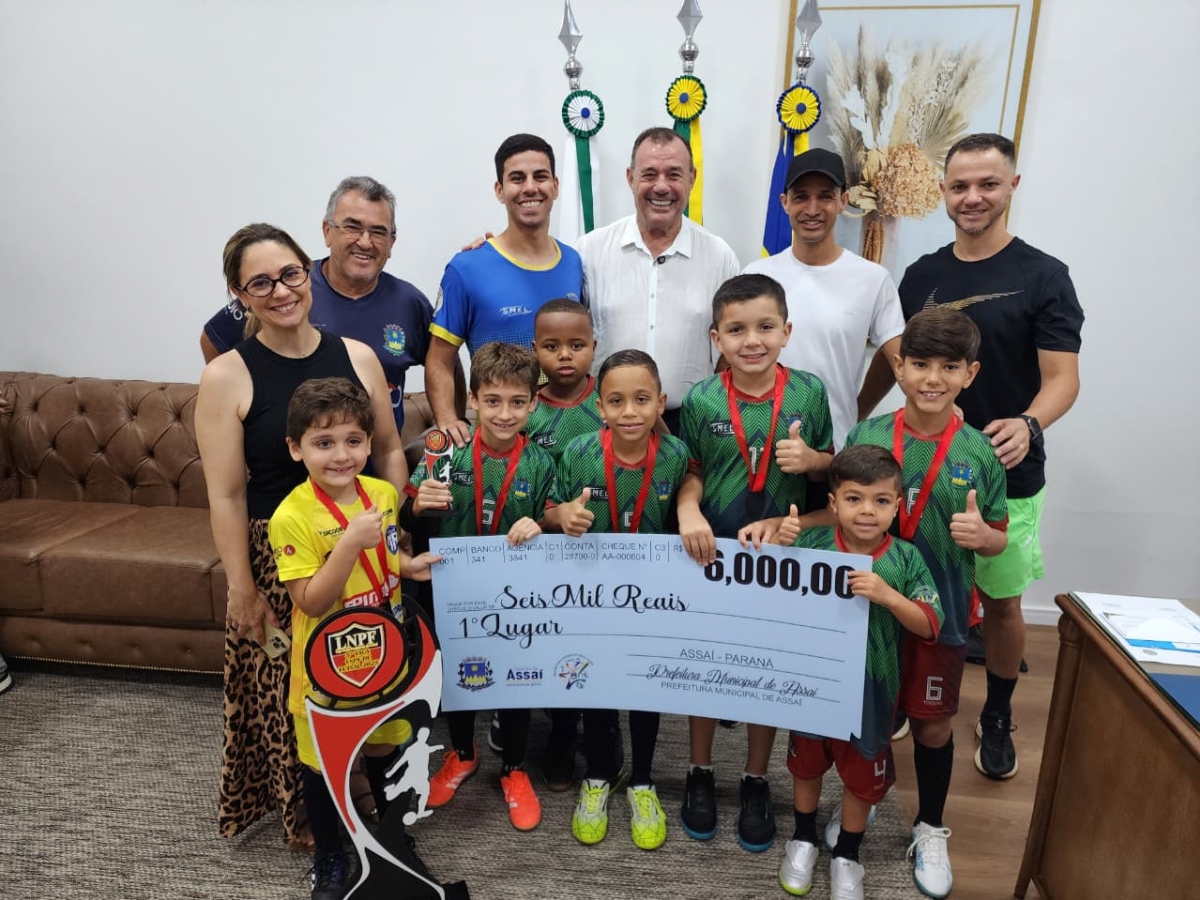 Já em Cornélio Procópio, foi a vez da nossa garotada do Sub-08 (Divisão Única) fazer história! Com muita garra e espírito de equipe, Assaí conquistou o título de Campeã da Taça Norte Paranaense de Futsal Sub-08, após empatar em 0 x 0 no tempo normal contra o C.A. Amoreirense e vencer por 3 x 1 nas penalidades.