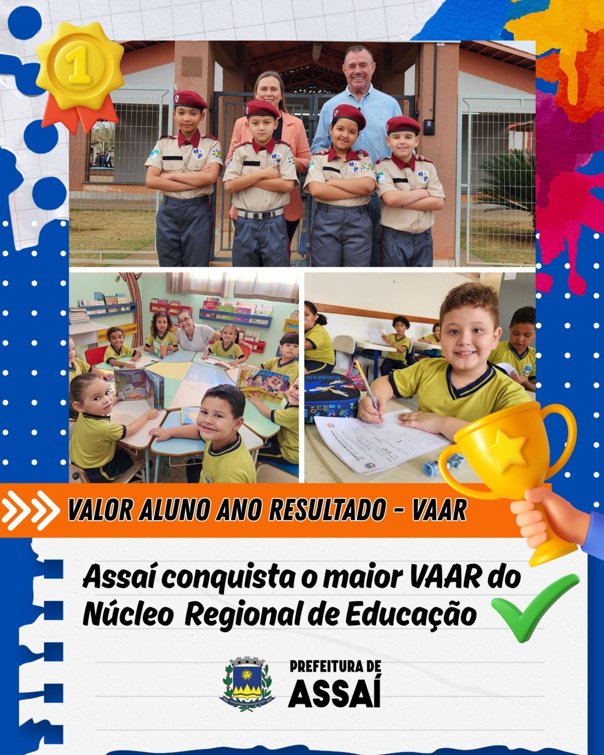 Em 2026, Assaí conquista o maior VAAR do Núcleo Regional de Educação de Cornélio Procópio. O VAAR (Valor Aluno Ano Resultado) é uma inovação do Novo Fundeb que direciona parte do financiamento federal para redes de ensino que demonstram melhoria na qualidade da educação, focando em aprendizagem, equidade e gestão.
