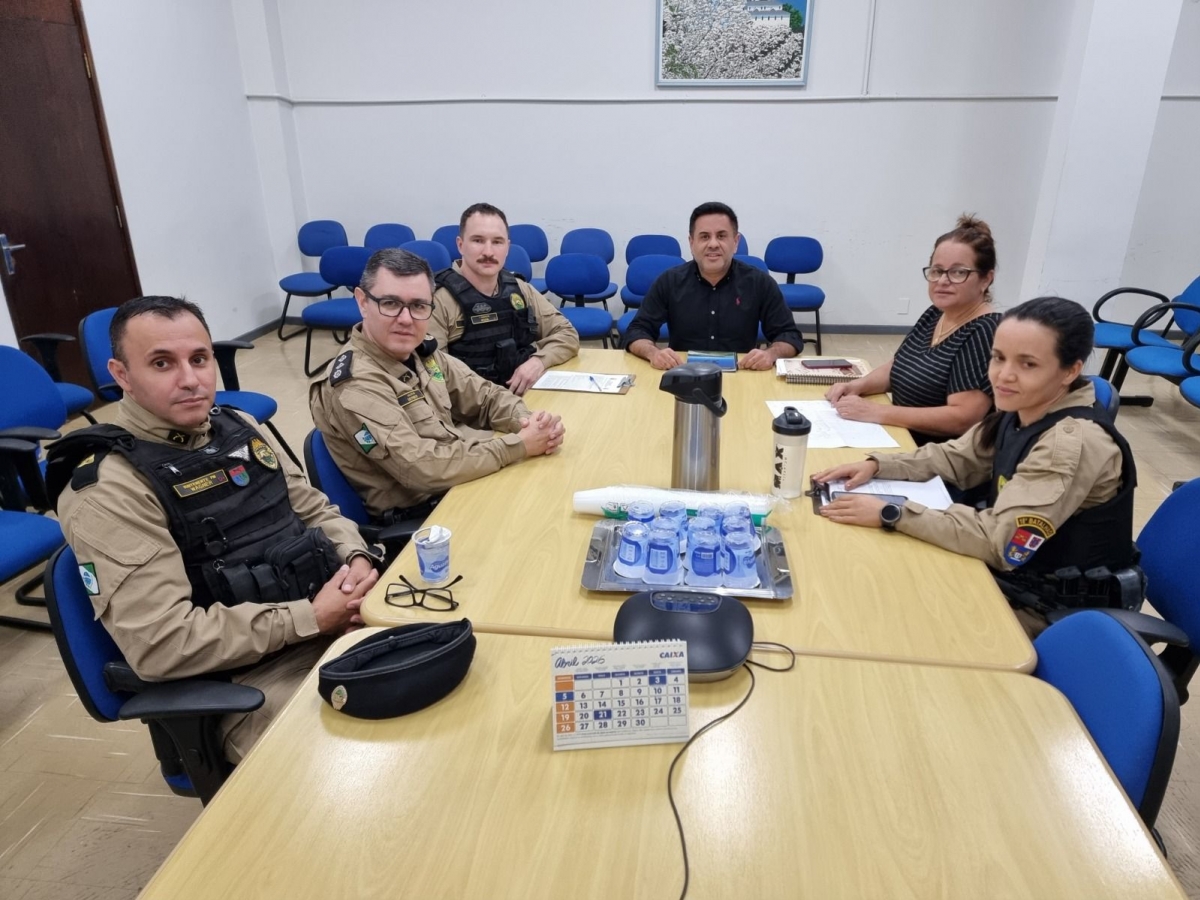 Representando o prefeito Tuti Bomtempo, o chefe de gabinete Paulo Roberto Moreira e a secretária de Cultura e Turismo Mariana Leonardi estiveram reunidos com o Major QP PM Jefferson Chamorro Berbert, o 1º Ten. QP PM Ítalo Roque Chanes Molina, o Subtenente Wagner José de Carvalho e o Cabo Renata Moraes.